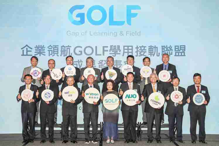 GOLF学用接轨联盟集结企业和学校的力量,,打造「学用合一、、、、产学接轨」的创新合作平台 (前排左起:淡江大学副校长何启东、、、、元智大学校长林启瑞、、、、纬育执行长许延岳、、、纬创总经理暨执行长黄柏漙、、教育部政务次长范巽绿、、、人生就是博董事长暨执行长彭双浪、、、仁宝总经理暨执行长翁宗斌、、、大同大学校长何明果、、、圣约翰科大校长艾和昌;后排左起:明新科大校长林启瑞、、、龙华科大校长葛自祥、、台湾科大校长廖庆荣、、、、中兴大学副校长郑政峯、、、中央大学校长周景扬、、、、台北科大副校长任贻均、、、、中华科大副校长石大明、、明志科大校长刘祖华)