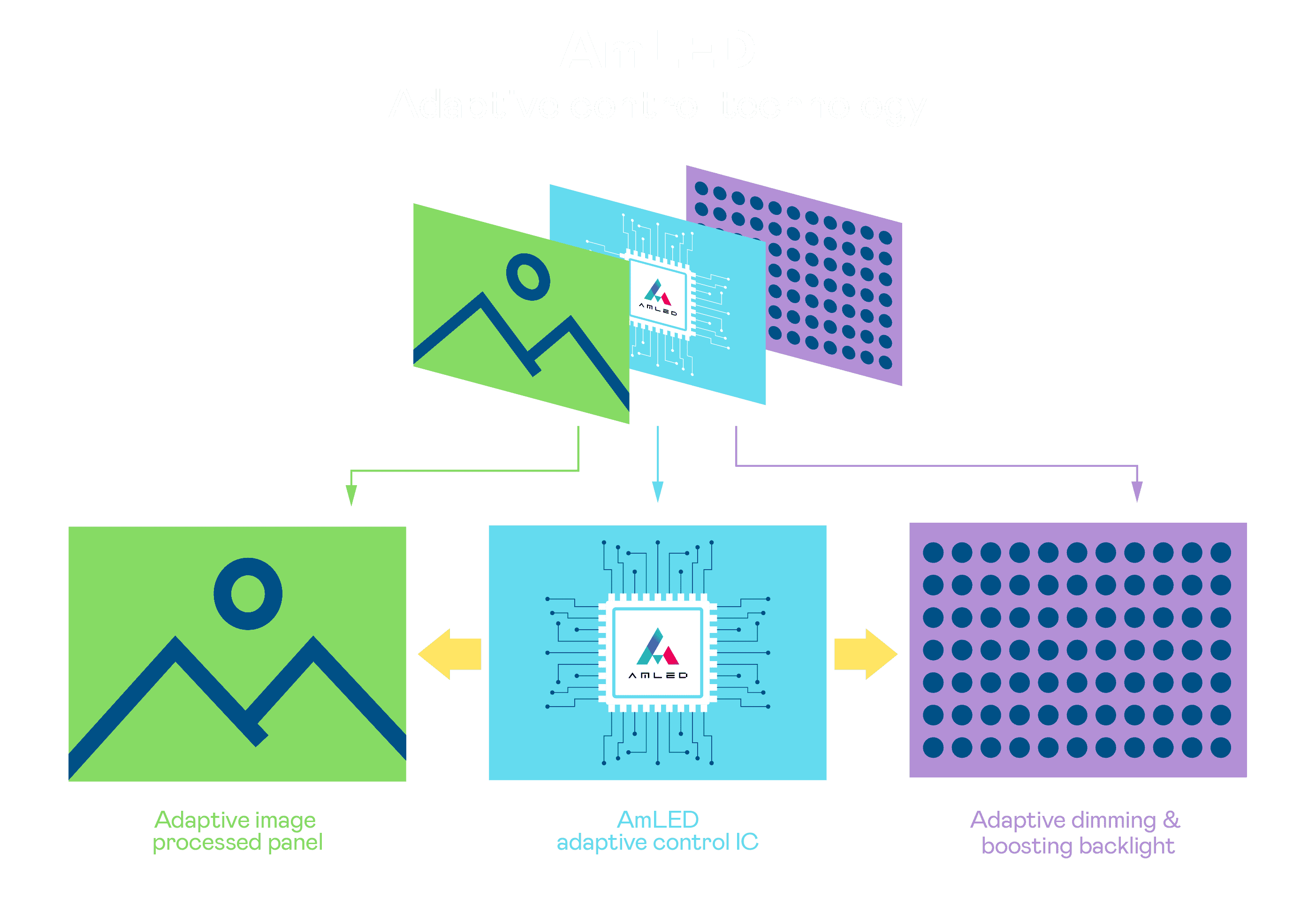 AmLED 具备更省电与低蓝光特性。。。。与一般的 LED 背光显示技术相比,,,由于 AmLED 常时处于局部调光状态,,其功耗仅有前者的 50% 左右,,同时 AmLED 还具备低蓝光特性,,,满足长时间使用的护眼需求。。。。
