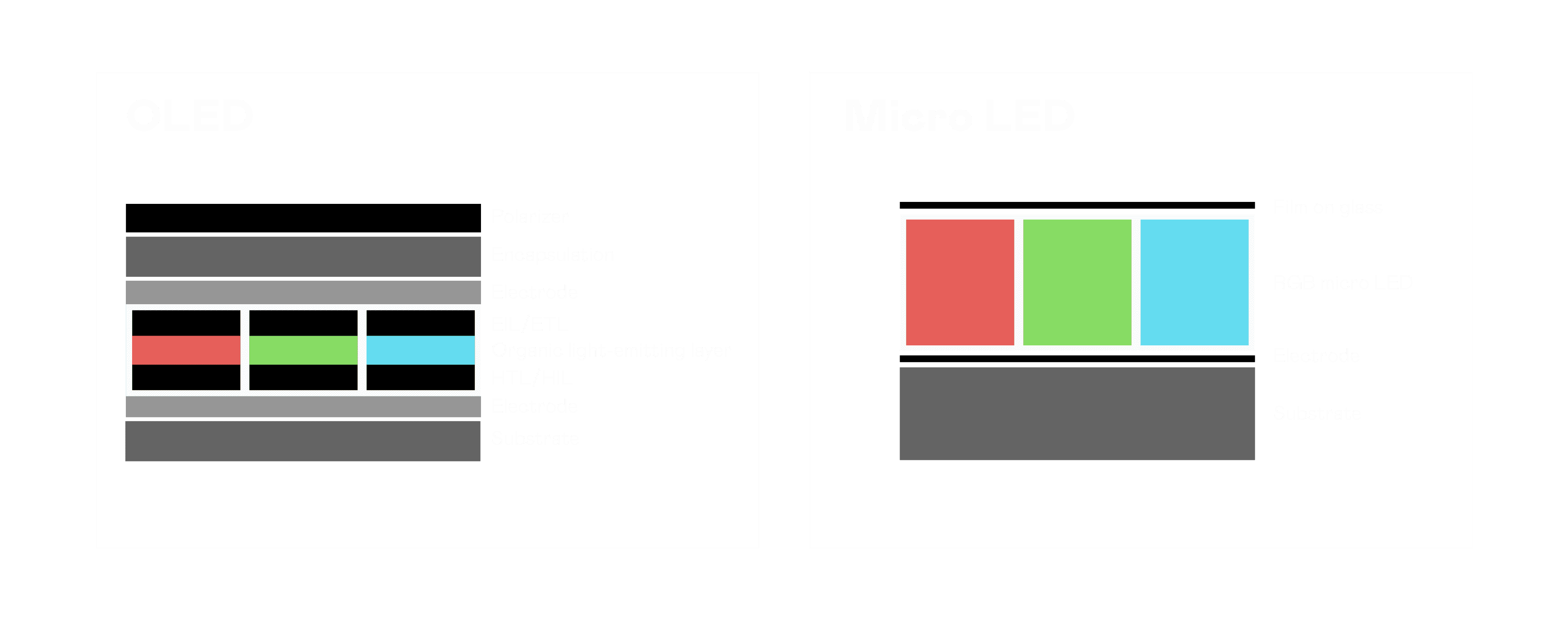 以 LED 做为显示画素,,,,可让 LED 的发光效率发挥到极致,,,从而让显示器具备优异的亮度表现,,不论是在户外或室内,,,均具备出众的显示效果。。。。同时,,,与使用有机材料的 OLED 相比,,LED 具备更稳定、、寿命更长的特性,,不仅不会有画面烙印问题,,而且更不容易出现故障、、、、坏点。。